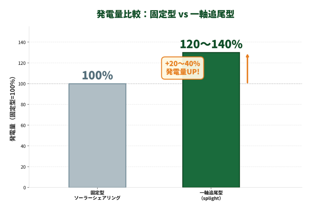 太陽の動きに合わせてパネルの角度を自動調整するため、固定型と比較して約1.2倍〜1.4倍の発電量が期待できます。